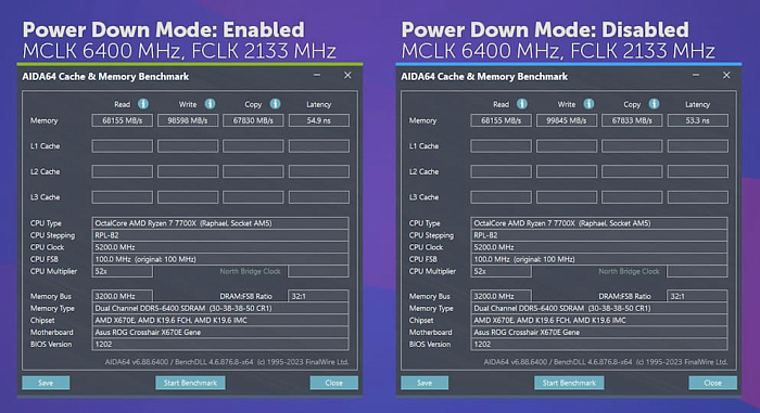В AIDA64 снижение частоты повлияло только на скорость записи и латентность, в то же время FCLK влияет на оставшиеся скорости чтения и копирования, в связи с чем у нас есть все основания полагать, что это всё-таки не AIDA виновата в низких скоростях, а особенность одночиплетных 7000 ryzen'ов.