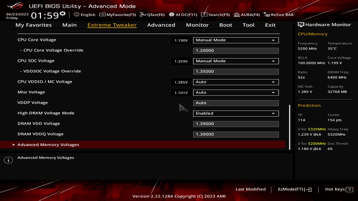 Помогает взять частоту памяти повыше лишь увеличение напряжения SoC, которое, как вы могли слышать, в последнее время рекомендуют ограничить 1.3 В, дабы повысить выживаемость процессоров. Куда большее влияние на максимальные частоты оказывает удачность экземпляра. Например, нашему 7700X для частоты 6400 МГц потребовалось 1.35 В на SoC (да, мы откатились на старую версию BIOS), а для 7800X3D всего 1.175 В. В то же время наши 7600X и 7900X нестабильны на этой частоте вовсе.